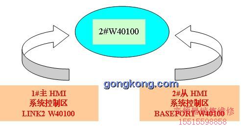 功能2:當(dāng)其中任意一臺(tái)HMI修改PLC寄存器的數(shù)值時(shí),同時(shí)能在另一臺(tái)HMI上一起變化。參見(jiàn)圖3,要實(shí)現(xiàn)主從人機(jī)換畫(huà)面同步,就要用【系統(tǒng)控制區(qū)】來(lái)幫忙了。設(shè)主從人機(jī)共用從機(jī)的MODBUS地址W40100來(lái)切換畫(huà)面。