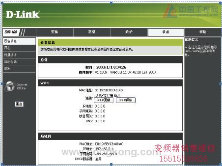 (7)上述步驟完成后,通過PC1登錄一下互聯(lián)網,如果成功,則表明網絡調試成功,此時再次進入D-LINK路由器操作,進入“狀態(tài)”選項,如果連接成功,在WAN一欄中會顯示DHCP客戶端連接,且“IP地址”、“子網掩碼”等均會有所顯示,請記下此IP地址,該IP為電信運營部門分配給ADSL的IP地址。比如為218.82.145.059。如圖5所示。