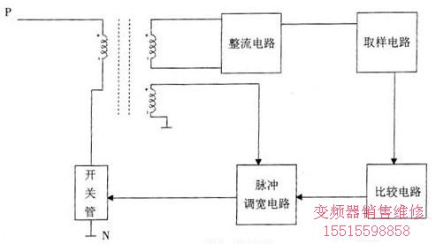 直流高壓P端加到高頻脈沖變壓器初級(jí)端,開(kāi)關(guān)調(diào)整管串接脈沖變壓器另一個(gè)初級(jí)端后,再接到直流高壓N端。開(kāi)關(guān)管周期性地導(dǎo)通、截止,使初級(jí)直流電壓換成矩形波。由脈沖變壓器耦合到次級(jí),再經(jīng)整流濾波后,獲得相應(yīng)的直流輸出電壓。它又對(duì)輸出電壓取樣比較,去控制脈沖調(diào)寬電路,以改變脈沖寬度的方式,使輸出電壓穩(wěn)定。
