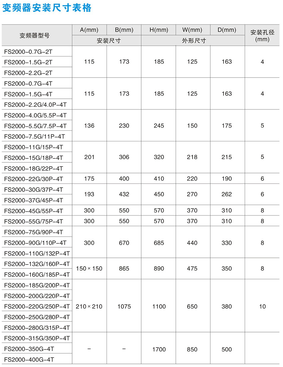 FS2000矢量型變頻器技術(shù)數(shù)據(jù)