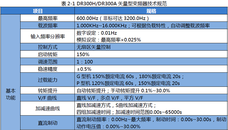 DR300A系列變頻器是一種簡單、高性能的變頻器,控制方式有V/F和無速度傳感的矢量控制兩種。更可實(shí)現(xiàn)開環(huán)轉(zhuǎn)矩控制。調(diào)整功能操作簡便,性能優(yōu)越,特別是無速度傳感器矢量控制模式下,低頻轉(zhuǎn)矩、穩(wěn)速精度及動態(tài)特性優(yōu)良。廣泛適用于機(jī)床、拉絲機(jī)、注塑機(jī)、起重機(jī)械、印刷機(jī)械等領(lǐng)域。